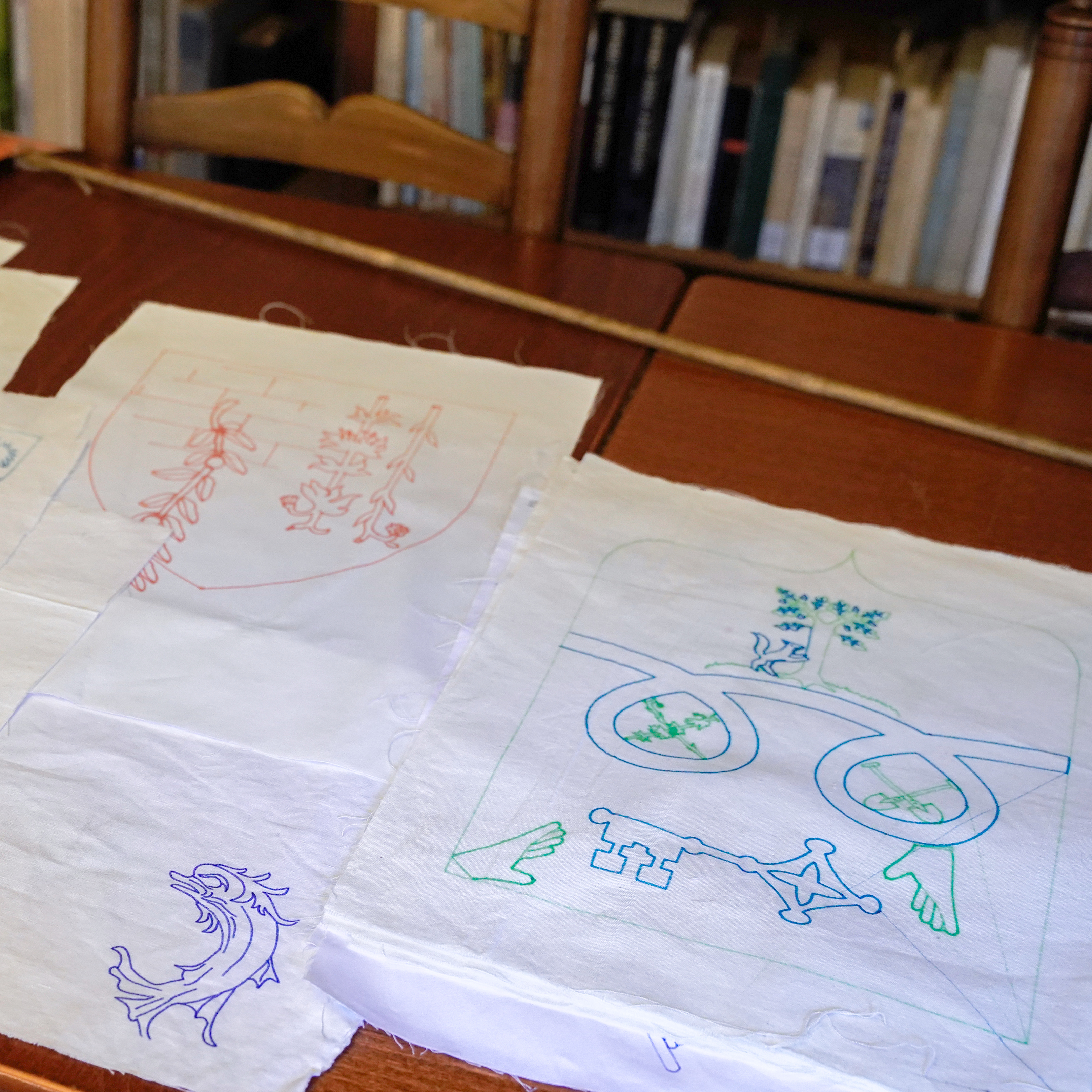 a pen-plotting coat of arms on textile workshop for the occasion of the yearly festival Feral by Cifas, this year on the theme of middle-age