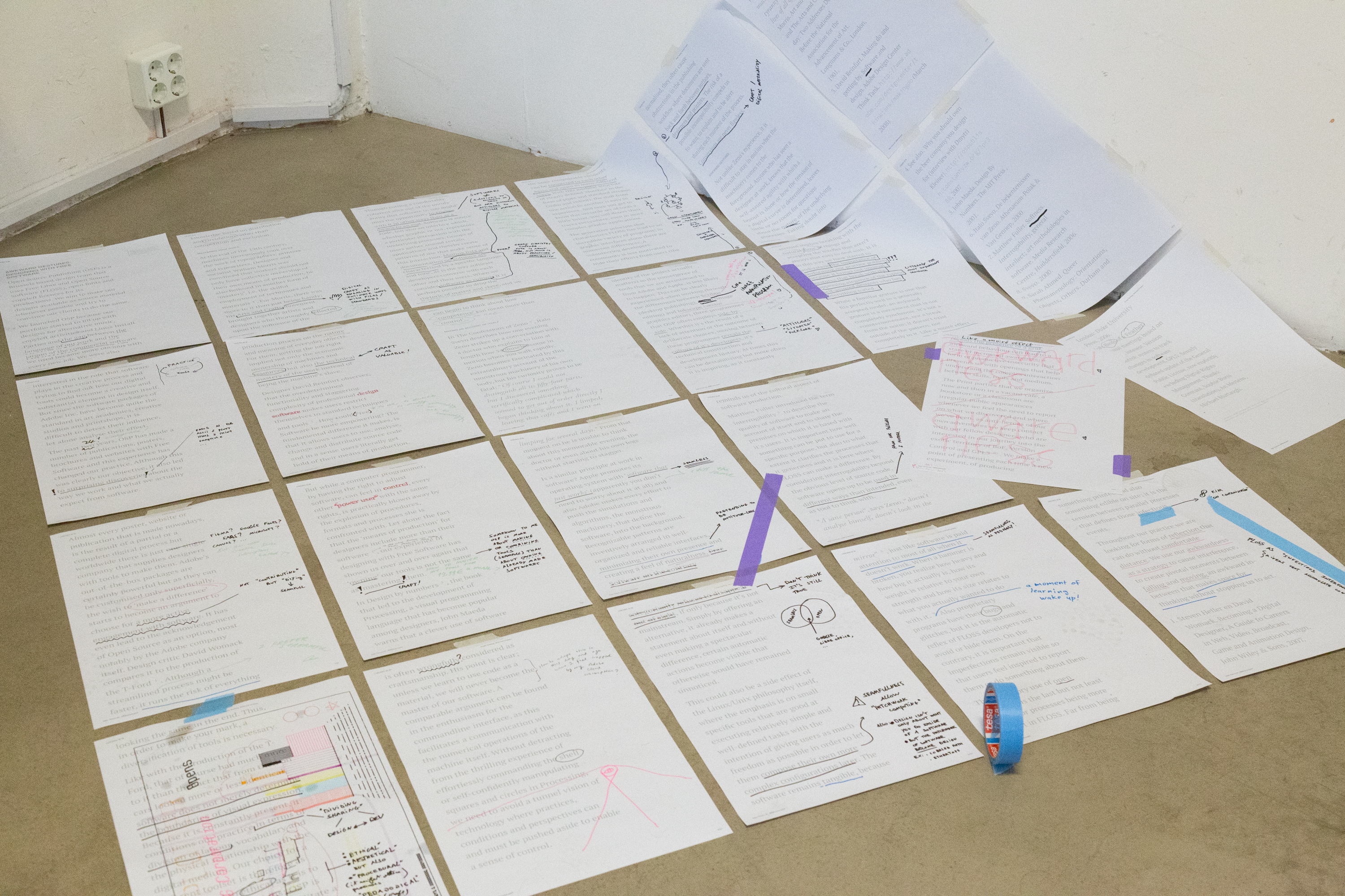 A workshop and opening/exhibition, at Fanfare in Amsterdam, commissioned by Salt, Pepper & Peace on annotating in visuals ways different texts about authorship.