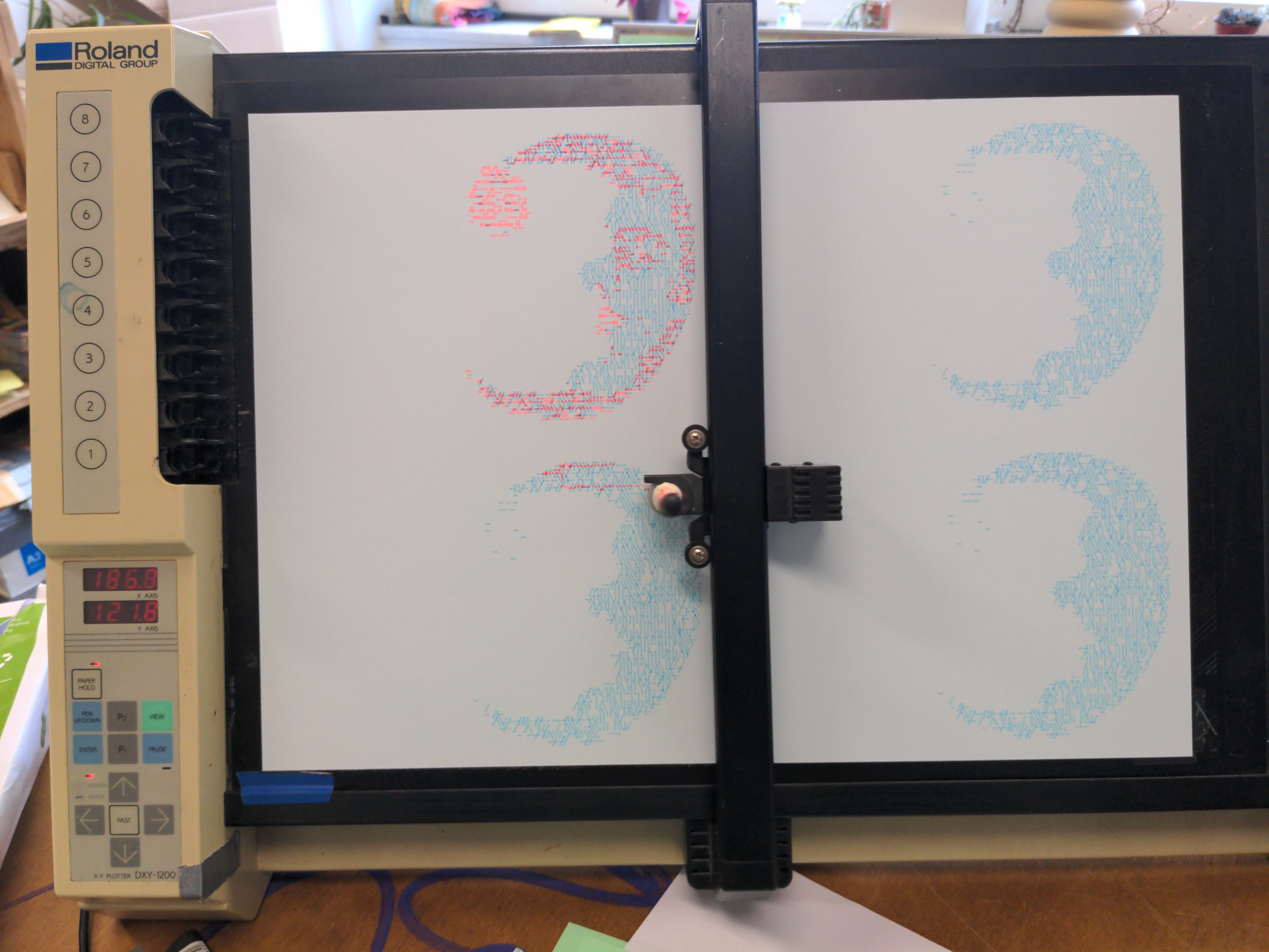 We look for a diversity of practice, background, level of amateurism, gender and age. No knowledge (other than a desire to draw with Ascii characters) is required to participate. As one of the ideas behind the plotter-station is to make available our machines and create knowledge sharing opportunities everybody is more than welcome.